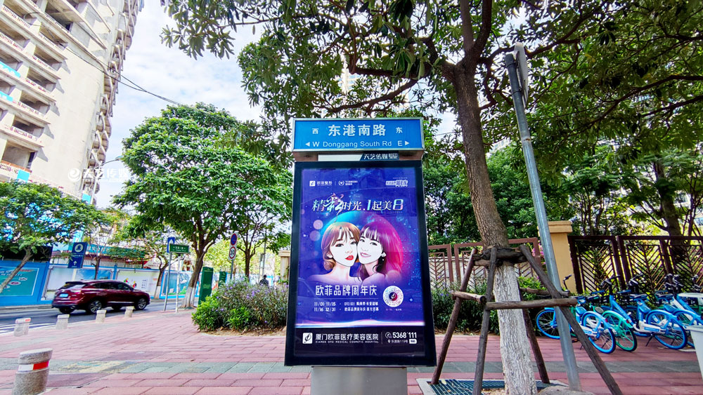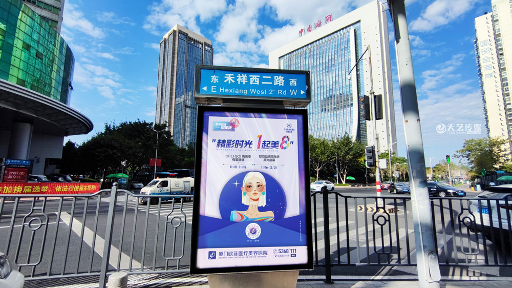值此歐菲品牌周年慶之際,歐菲品牌在廈門島內(nèi)各個(gè)黃金路段(仙岳路、嘉禾路、湖濱南路、鷺江道、環(huán)島干道、東渡路等)投放超過400座城市路名牌和200座社區(qū)快遞柜媒體(集中在中高端人群住宅區(qū)、居住率較為密集的生活居住區(qū))。